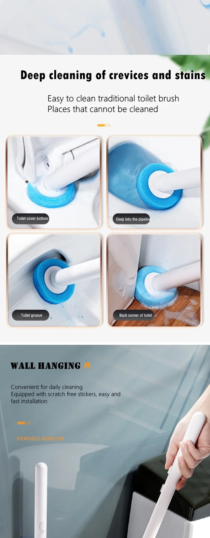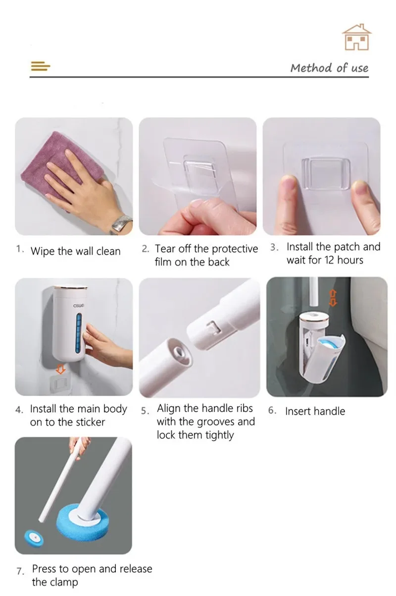 Set 1: 1*Toilet brush shell+8pcs ocean heads+1* wall sticker